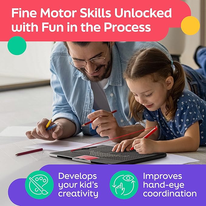 • No Eraser Needed: Let your kids unleash their creative juices just by pointing the magnetic nib of the stylus on each hole to move the magnetic beads to the surface. To undo, just use the side of the pen to push them back down.