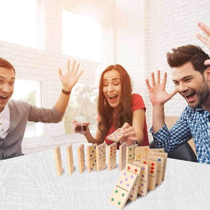• Size: Included 28 pieces of dominoes, each dominoes piece measures 5" x 2.5" x 0.4", giant size with multicolor dots painted and easy to see