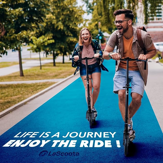 LaScoota Kick Scooter for Kids Ages 6+, Teens & Adults, Large 8" Sturdy Urethane Wheels. Adjustable Handlebar, Lightweight, Foldable, 220lbs Max Load