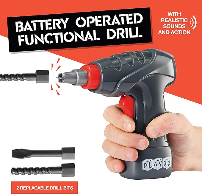 - All The Tools Needed ! Equip Young Handyman With All Basic Realistic Tools They Will Need To Build, Repair - Kids Tool Bench Workshop Includeds: Workbench, Electronic Cordless Drill, With 2 Drill Bits, Screwdriver, 2 Screwdriver Head, Hammer, Wrench, Screws, Nuts, Screws, Nuts, Spanners , Safety Goggles, Saw, Spanner, Pliers, Squares, Spirit Level, Wrench, 3 Plates With Holes, Measure Gauge, - A Variety Of Tool Accessories Can Be Used In Combination Or Used Individually