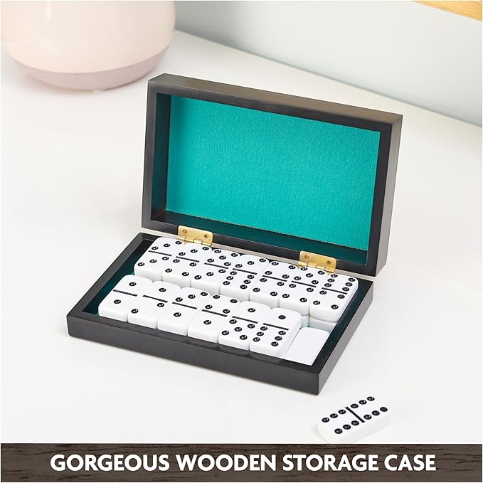 • Includes: 28 Dominoes, Wood Case, Instructions