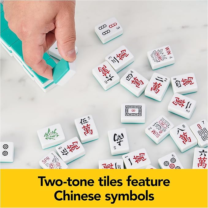 Spin Master Games Legacy Deluxe Mah Jong Classic Game with Two-Toned Tiles and Lined Wood Storage Case, Family Game for 4 Players Ages 8 and up