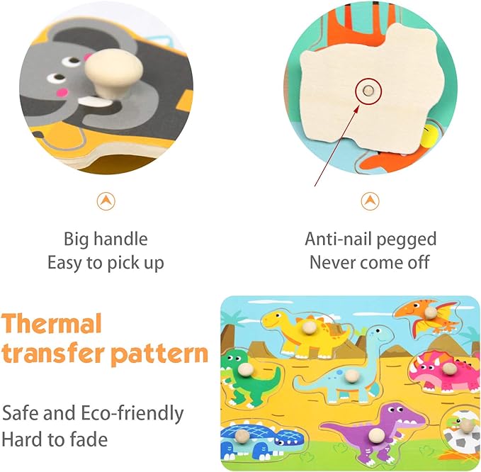 - ๐EASY TO GRASP PIECES: The knobs on each puzzle piece are strategically designed for small guys and exactly the perfect size fitted to toddlersโ hands. Every piece is large enough to prevent babies from choking hazard, but we recommend it for kids age 2 and up.
