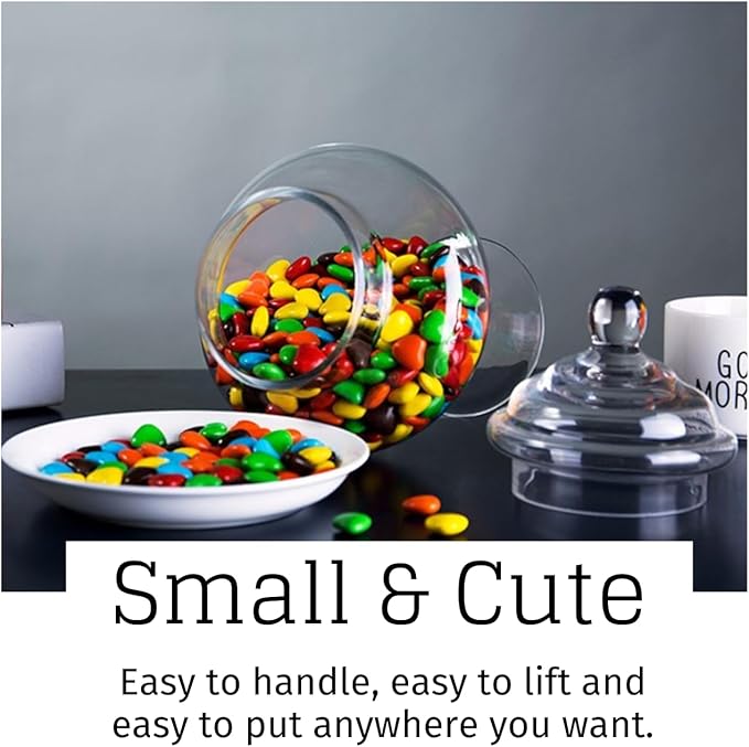 - HIGH QUALITY GLASS JARS: The apothecary jars glass are made of high quality hand-blown sturdy and durable glass. The size of the cute and small glass candy jar is approximately (with lids) 9" (H) x 5" (D) and the capacity is approximately 28 fl.oz.