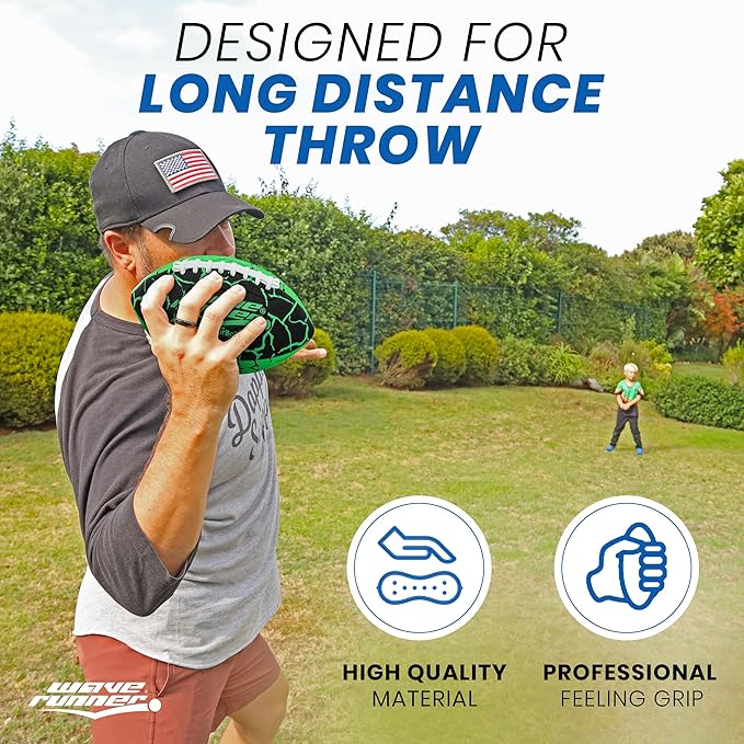 - All-Terrain Football for Any Adventure – Meet the Wave Runner Xtreme Grip-It Football, the ultimate all-terrain football designed for play anywhere—on the beach, grass, turf, street, and even in water! Whether it’s a backyard scrimmage or a game at the lake, pool, or park, this ball is built for action.