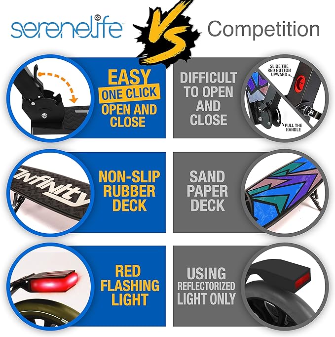 - LIGHTWEIGHT ALLOY DECK: The Kick Scooter for kids and adults features a durable alloy deck, perfect for indoor and outdoor use, with an extended standing area for improved performance. Supporting riders up to 220 LB, it's suitable for ages 7 and up