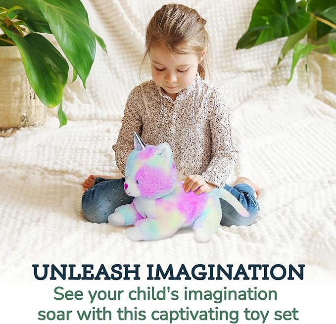 • IDEAL UNICORN GIFTS: Incredibly soft and comforting unicorn toys for girls; this set is destined to become cherished companions for both playtime and bedtime; our magical cat toy is an excellent gift for birthdays, holidays, and special occasions