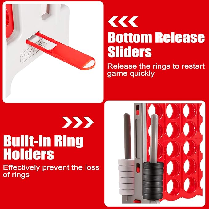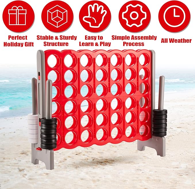 • Giant Educational Family Game: The Jumbo 4-to-score giant game is a classic strategy game, which is designed for exciting competition! It is suitable for courtyard, balcony, at a birthday party or on a barbecue. This board game can exercise strategy skills, cognitive ability, mind thinking and more.