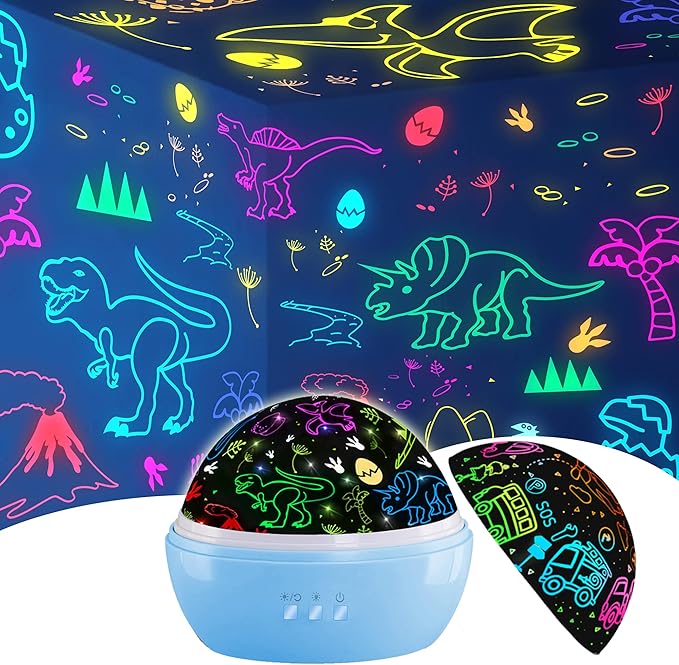 - 【Eco-friendly & Safety】The Dinosaur toy car gifts for kids is made from Safe approved eco-friendly material, safe and harmless to the human body. The night light comes with soft, uniform, non-flicker light, making it safe to your kids, bringing them a nice feel. It is a very human and practical kids night lights for bedroom.
