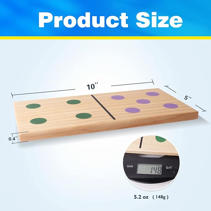 • Size: Included 28 pieces of dominoes, each dominoes piece measures 10" x 5" x 0.4", giant size with multicolor dots painted and easy to see