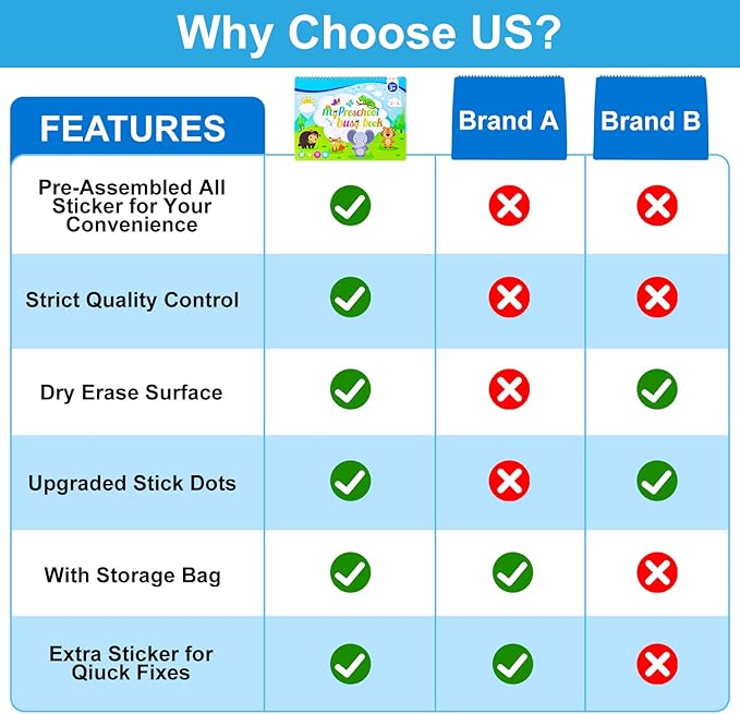 - Durable & Safe for Little Hands. Made with thick, reinforced cardboard and rounded edges, this toddler book is safe and durable for toddlers aged 2-3-4-5. The strong adhesive dots keep activities secure, and the sturdy design ensures longevity. Perfect for on-the-go learning, it’s a must-have for travel, car rides, or busy days.