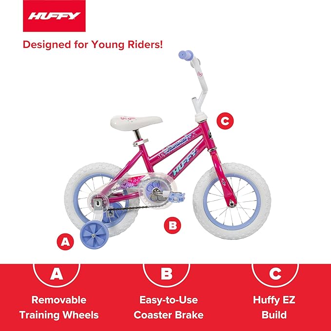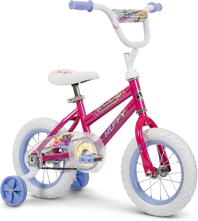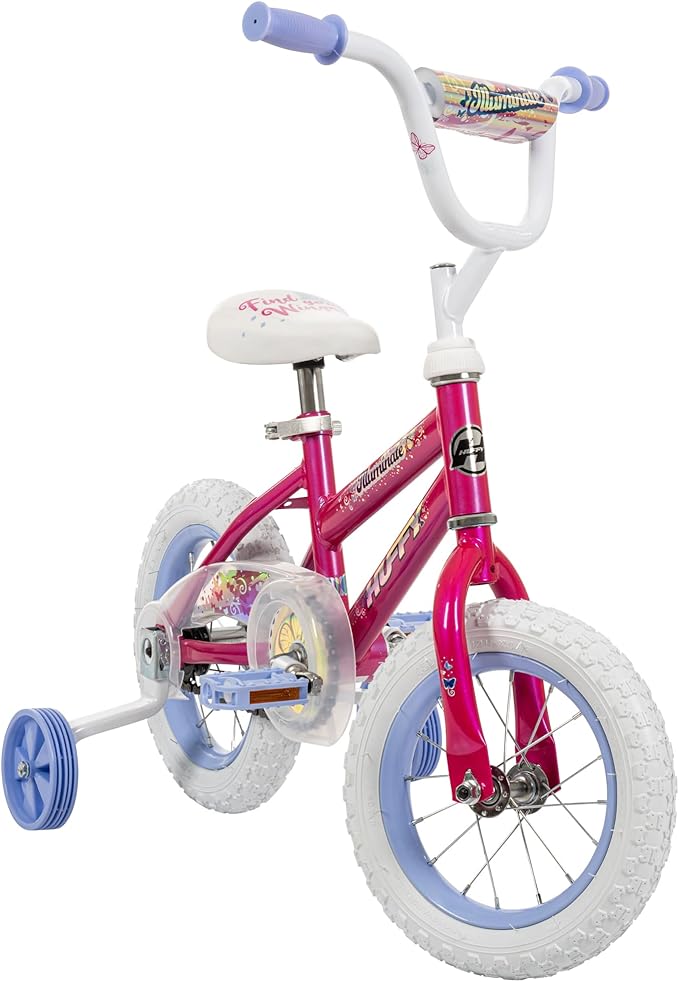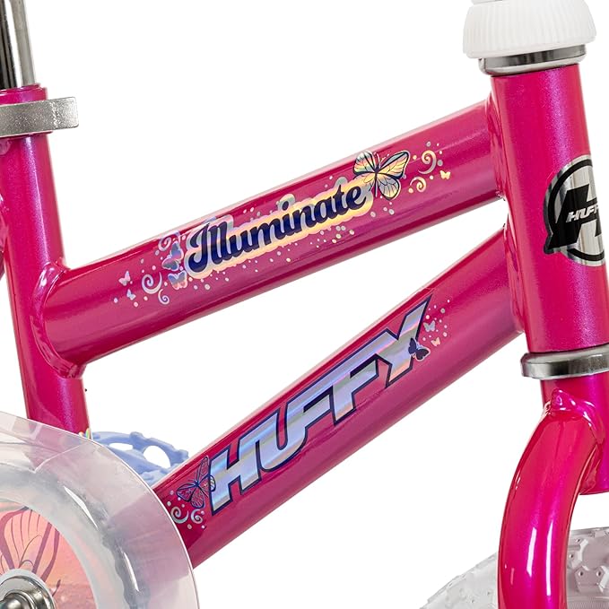 Huffy Illuminate Bike for Girls, 12/16/20 Inch Size Options, Ages 3+ Years Old, Removable Training Wheels (12" and 16" Only), Multiple Color Options, Easy Assembly, Streamers, Adjustable Seat, Durable