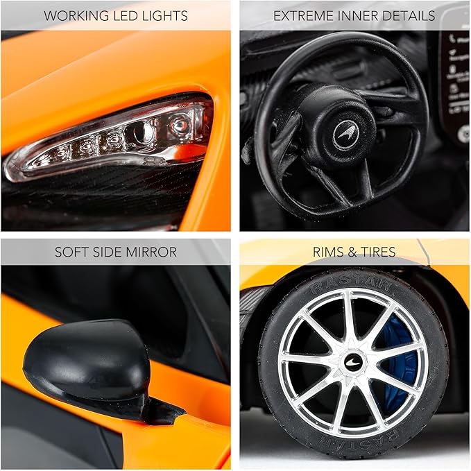• Officially licensed by McLaren; Mclaren Senna rc car measures 34x15.4x8.7cm.