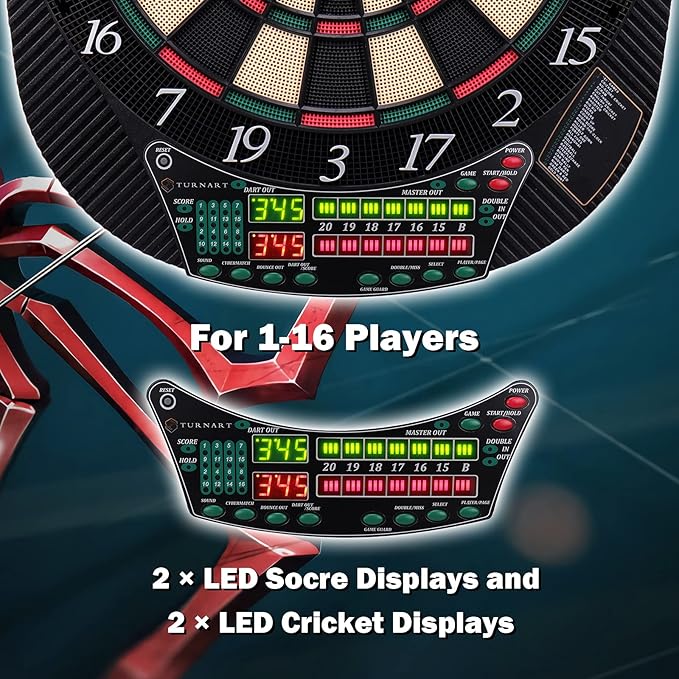 Turnart Electronic Dart Board - Dart Board Electronic Scoreboard for 16 Players - 6 Darts Plastic Tips 50 Soft Tips LED Display Power Adapter Throw Line