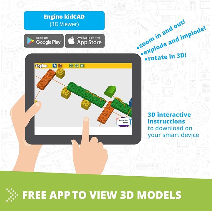• STACK & CLICK STSTEM: Increase dexterity and perception of 3D space! Vertical and sideways assembly. Enhanced creativity by connecting bricks with beams in any direction. 3D MODEL VIEWER: Compatible with the Engino app.