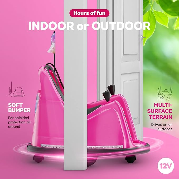 Bumper Buddy Ride On Electric Bumper Car for Kids & Toddlers, 12V 2-Speed, Ages 1 2 3 4 5 Year Old Girls - Remote Control, Baby Girl Riding Bumping Toy Gifts Cars - Toys Gift Toddler 12-18 Months Age