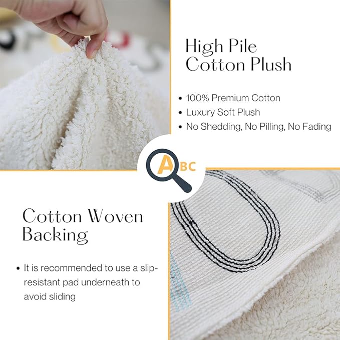 - Handcrafted Alphabet Design: Lovely 26 Letters Pattern, cultivate kids' recognition of the brief letters of the basic study, very suit for room decor and photography props. Soft kids area rugs are nice for the living room, bedroom, nursery, picnic, beach and more. Perfect baby shower gift or Christmas gifts, even daily gift.