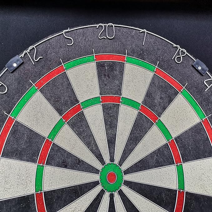- DESIGNED TO REDUCE BOUNCE OUTS – Features a self healing bristle dartboard for adults and staple-free bullseye to minimize bounce-outs. Black felt lining protects the wooden dart board cabinet interior from stray shots.