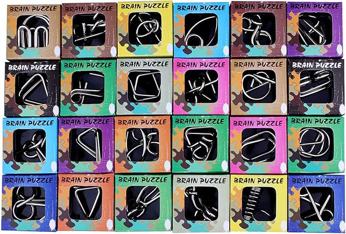 - 24 pack large metal puzzles: 24 different styles metal brain teasers each with gift box package, throughout the kit providing a good amount of fun and challenge! Great metal brain teasers mind toys for kids adults and easter basket stocking stuffer