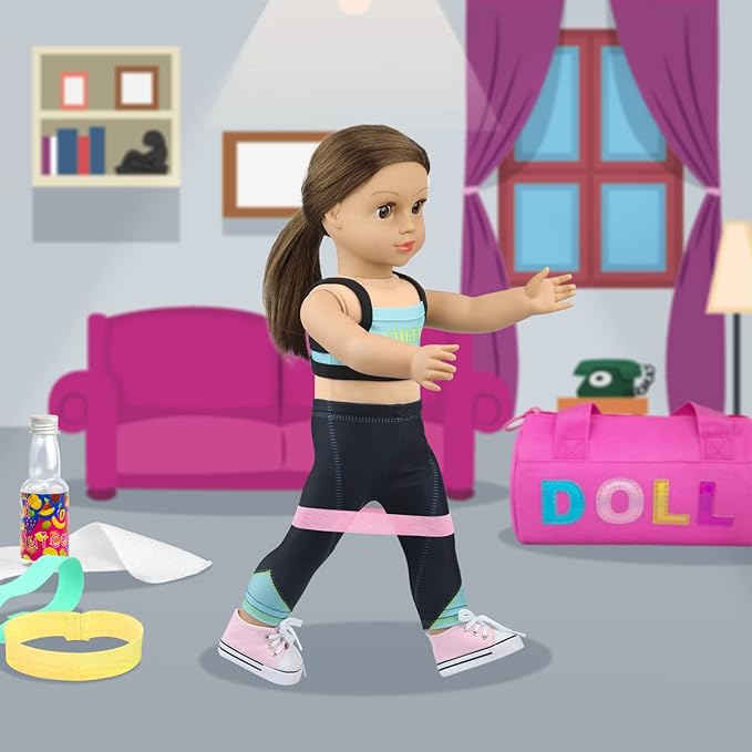 • Package included: Fashion 18 inch girl doll yoga sports clothes 8items sets- Vest suit, shoes, sport bag, yoga band, towel, water bottol (Pls kindly know that dolls are not included)