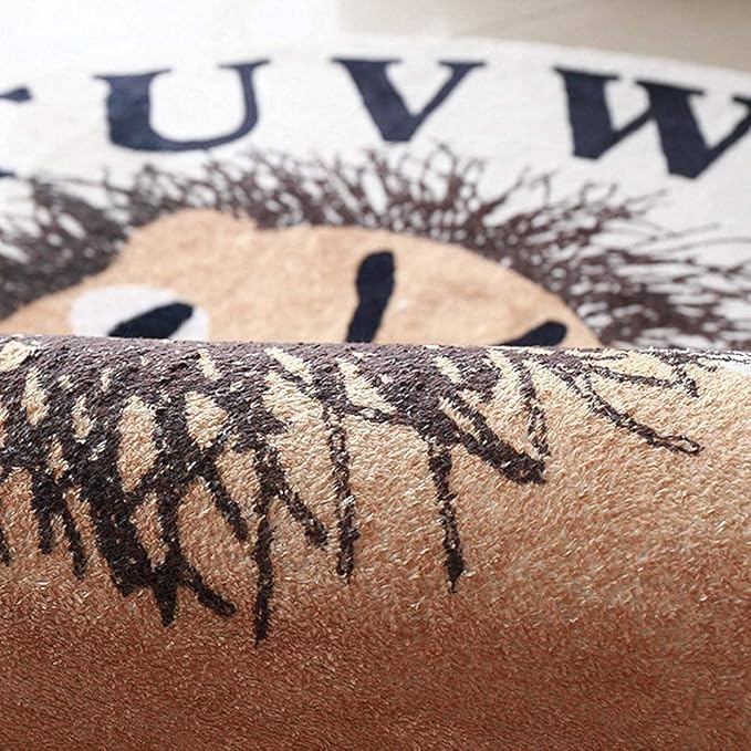 Poowe Round Kids Playroom Rug - Soft Alphabet Nursery Rug for Bedroom - Playtime Collection, Learning & Game Carpet for Classroom, Best Shower Gift for Infant Toddlers (Round 39.4", Orange Lion)