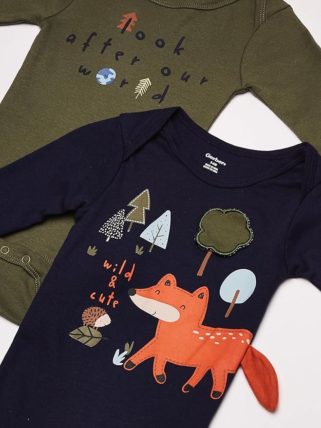 • Features expandable lap shoulder necklines & high-positioned bottom snaps for easier changes