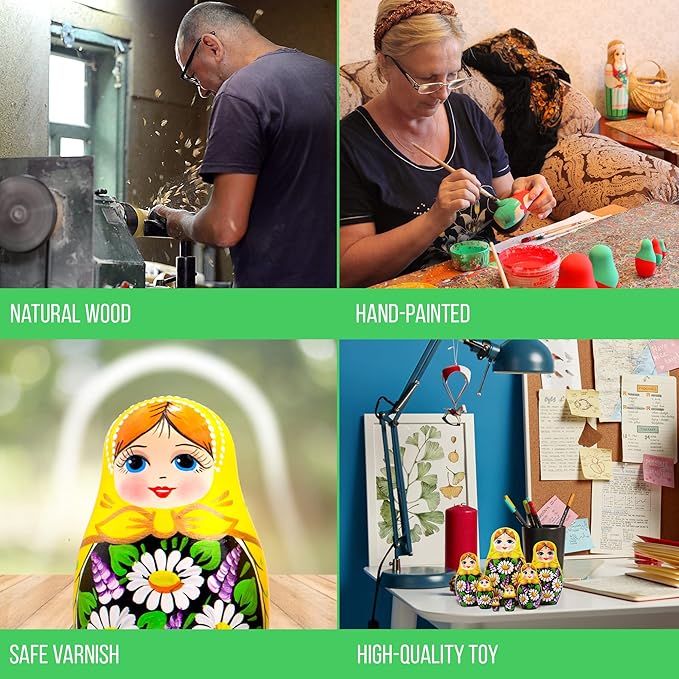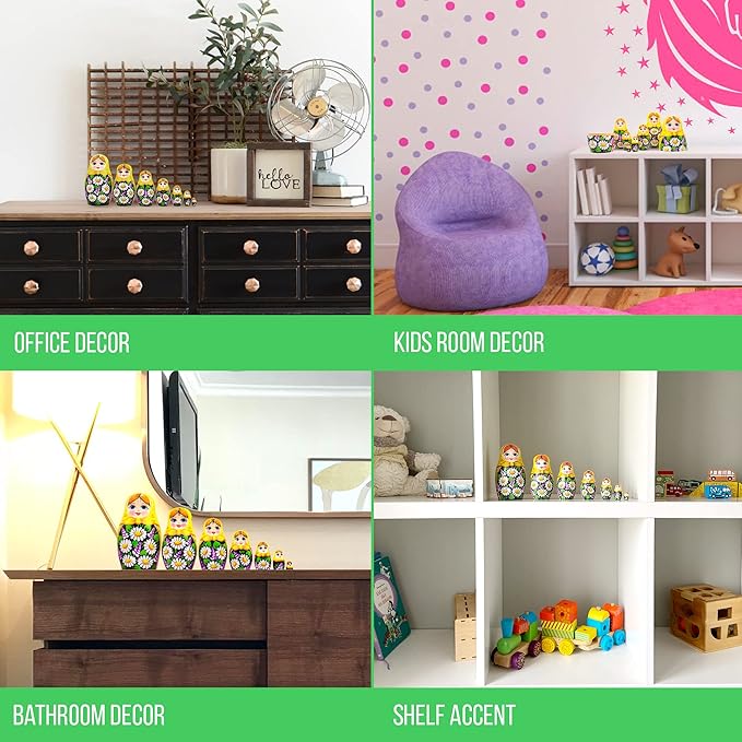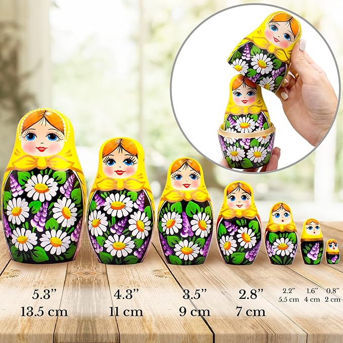 • PERFECT DIMENSIONS: largest doll is 5.3'', smallest is 0.8''. Set of matryoshka dolls includes 7 pcs