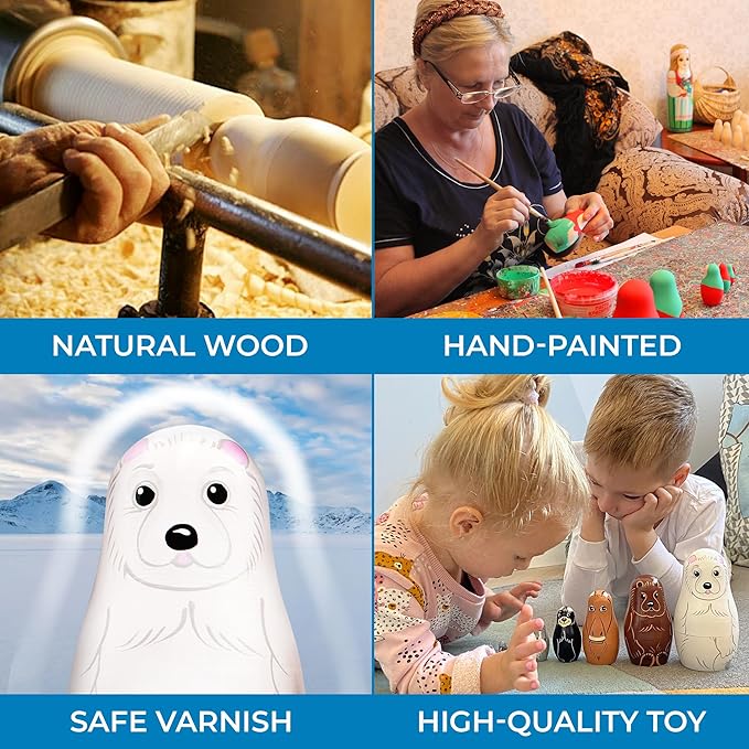 Wooden Animal Nesting Dolls Set of 7 pcs - Matryoshka Polar Animals Figurines - North American Animals Alaska Souvenirs