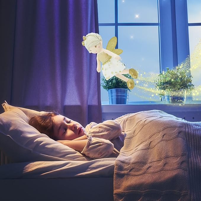 • ENCHANTED GARDEN FAIRY DOLL: Discover the magic of June Garden fairies, who bring good luck wherever they go! Within the Enchanted June Garden, home to magical beings, resides the lovely fairy Elida. She casts enchanting spells, filling children's lives with hope and love. Spirited and energetic, Elida adores spending time with little ones. Place her beside a pillow, and watch her wings flap and glow at night!