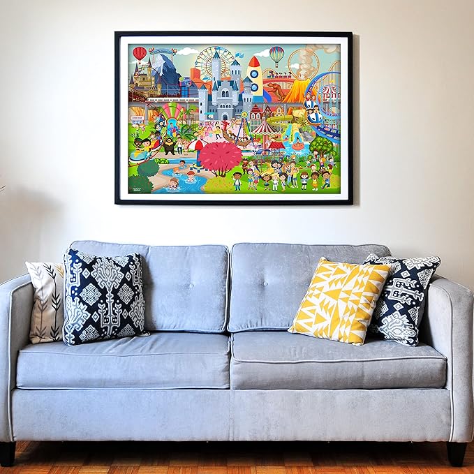 - 【Educational】 - Great colorful puzzle for Kids interested in Amusement Parks. The puzzle features roller coasters, merry go around, haunted mansion, play grounds and water rides. The puzzle comes with an attractive box. Recommended for kids ages 8 and up.