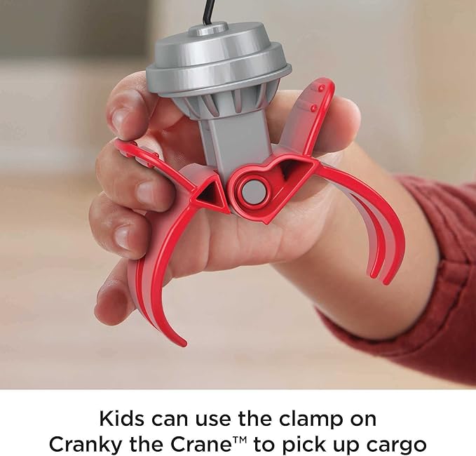 • Attach the magnetic claw or engine cradle to Cranky the Crane to lift and load cargo from Bulstrode the Barge to the docks