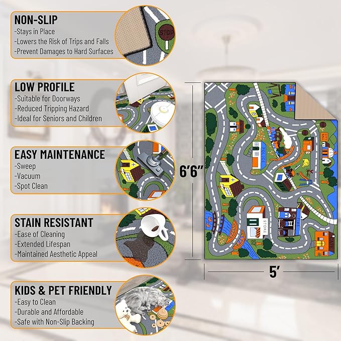 • [TRENDY STYLE]: This Colorful Educational Town Traffic Play Design Area Rug features colorful hopscotch design for children of all ages to enjoy adding color and enhancing the look of your home. Its timeless design can be integrated into a variety of home décor styles.