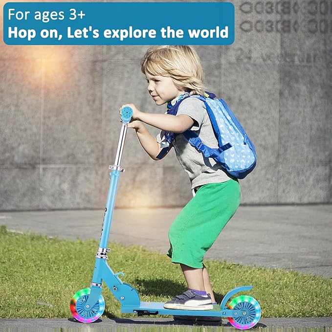 - [Easy Fold & Carry] Kids scooters very easy to fold and put together. It weighs only 4.2 pounds, very lightweight to easy for your kid to carry. Also you can fold down kick scooter for easy storage or take to the park, garage, traveling etc.