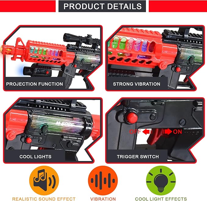 - SHOOT YOUR SHOT: What a great way to add a burst of energy on the weekends. This pack comes with 1 vibrating toy rifle for kids that features bright red & black colors. Your kiddos will be grinning from ear to ear while playing with this fun booster.