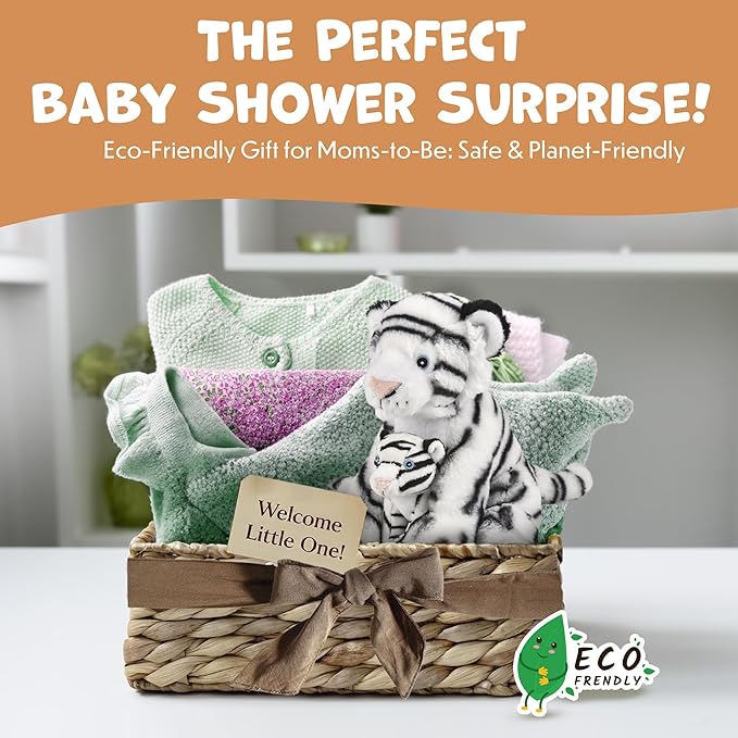 Mom and Baby Stuffed Animals for Boys & Girls, Safari Baby Shower Decorations, Nursery Decor, Zoo Animals for Toddlers, Quality Realistic Toys for Kids, Cute, Soft, Huggable (9.5" White Tiger)