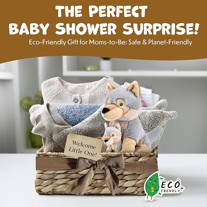 Mom and Baby Stuffed Animals for Boys & Girls, Safari Baby Shower Decorations, Nursery Decor, Zoo Animals for Toddlers, Quality Realistic Toys for Kids, Cute, Soft, Huggable, Squeezable (9.5" Wolf)
