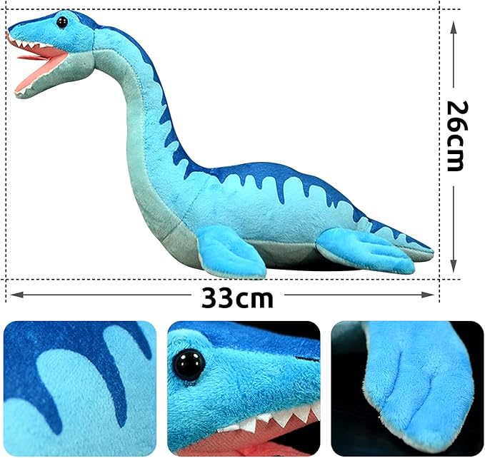 • 【Realistic Appearance】Our Plesiosaur plush toy is 15.74 in·ches long / 3.93 inches wide / 3.54 inches high; we use pure hand-made, we show every detail, it looks very realistic and cute, I believe you will like it very much! Collect each dino in our Dinosaurian collection which includes the Stegosaurus, Triceratops, Velociraptor, Microraptor,T Rex,Spinosaurus