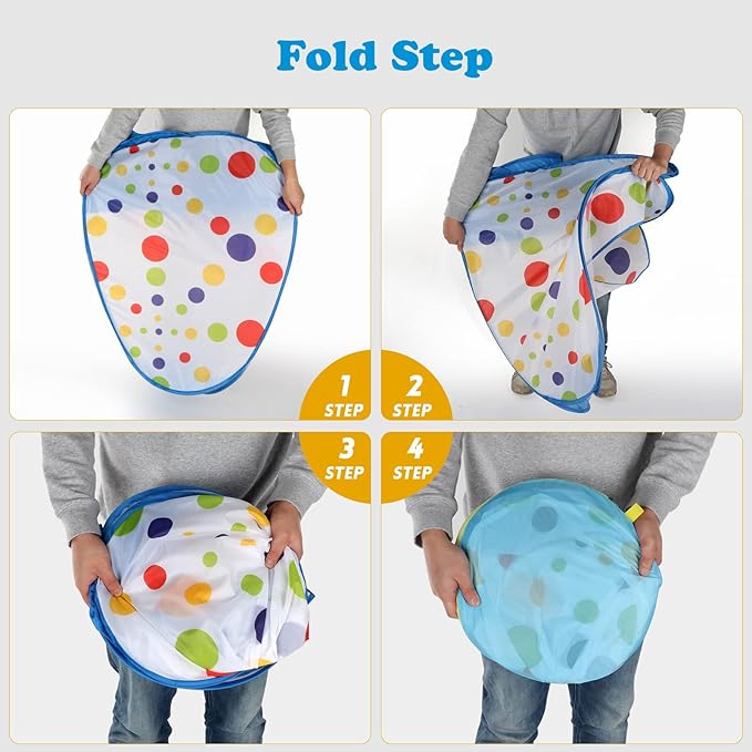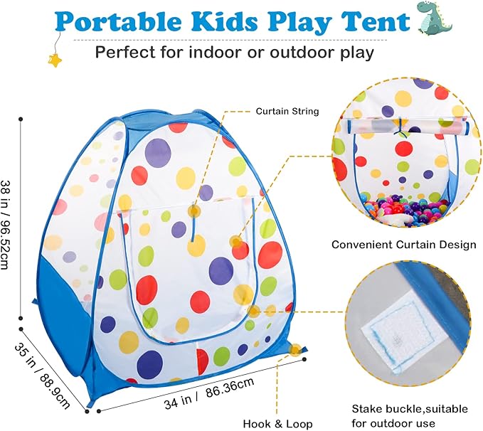 • [Indoor & Outdoor Toddler Toys]: The kid ball pit play tent unfolds size is 35 x 34 x 38 inches, fold-up size is 14 x 13.2 x 1.7 inches. This toy for toddlers uses the set at parties, picnics, parks, daycare, school, carnivals, sleepovers, or simply keeps the dream tent at home!