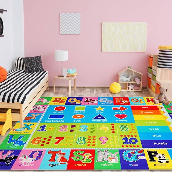 - GREAT KID RUG: This activity mats perfect for kids playing, moving, crawling and learning, Bring this educational area rug into your home, classroom to brighten your space and increase the desire for your children to learn new things. Let your baby grow up in playing and learning.