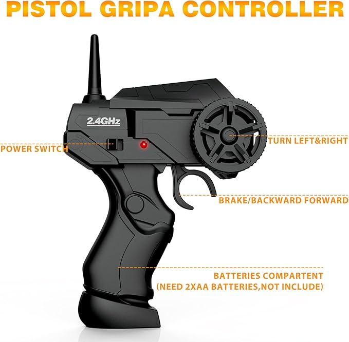 • 2.4GHz Radio Control System: The 2.4Ghz technology allows multiple remote control cars to be played together without interference with each other. The pistol grip controlle is easy to master, help your kids develop their social and teamwork skills