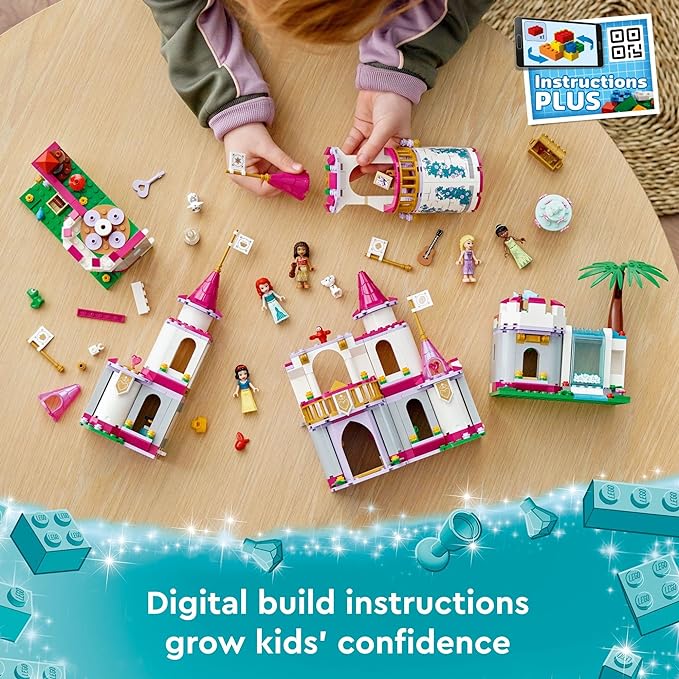 • The buildable castle toy includes Ariel, Moana, Rapunzel, Snow White and Tiana LEGO ǀ Disney Princess mini-dolls, and opens up for more fun!