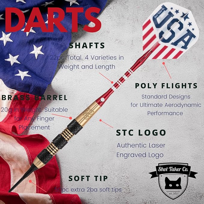 Soft Tip Darts Set - Professional Darts for Electronic Dartboard - Includes Brass Barrels + Plastic & Aluminum Shafts + Rubber O'Rings + Flights + 50PC 2BA Tips + Wrench