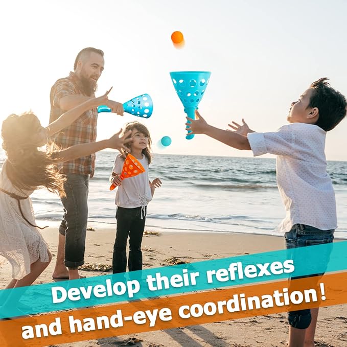 Pop and Catch Ball Game with 24 Balls and 4 Catch Launcher Baskets - Outdoor Indoor Game Activities, Easter Basket Stuffers Gifts Beach Sport Summer Beach Toys for Kids Ages 4 5 6 7 8 10 12+