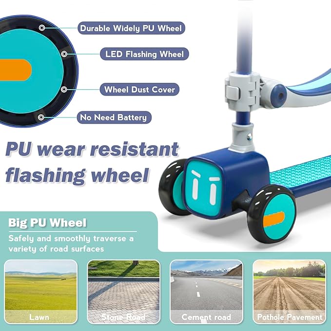 - WIDE RANGE OF AGES: The Ergonomically-Shaped Rubber Grips are Soft non-slip on the Hands and Help Prevent Hand Fatigue. And with Handlebars 5 Height Options — 24/25/26/29/32 inches. That Allows kids to Grow with the Scooter.