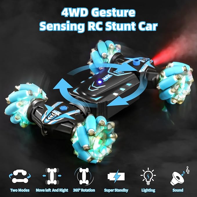 • Great for Christmas Gift: With 4WD capability,the gesture sensing RC stunt car is designed for all terrain stunts,making it the perfect choice for adventurous kids who love remote control cars