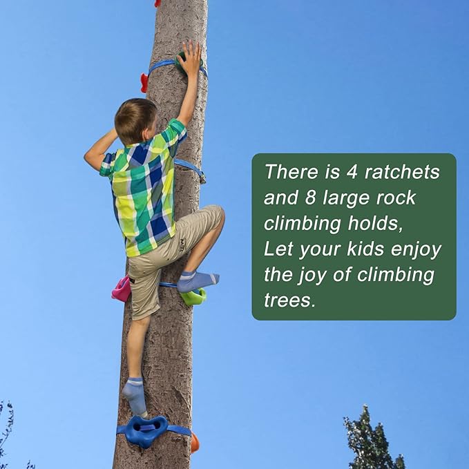 • Monkey Tree Climbers - There is 4 ratchets and 8 large rock climbing holds,Let your kids enjoy the joy of climbing trees.Gives you extra pleasure other than the zipline.