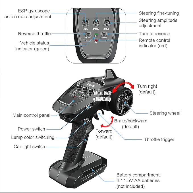 - [Powerful Controller]—Full-featured proportional 2.4GHz radio control reflects a 300ft control range, which can let remote control is easy to operate, and the new design can let the track forward/brake/reverse more easily. Built-in anti-jamming function, many drivers can race together with no interference. Let your child enjoy the fun of racing with friends.