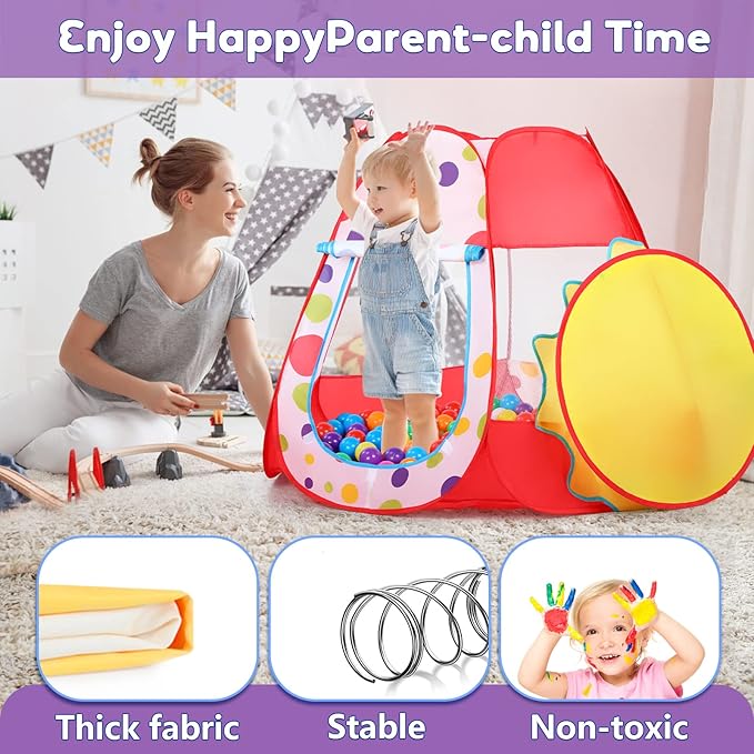 - Indoor Outdoor Play: It is lightweight and portable that can be also taken anywhere. You can put this kids tents in living room, yard, garden, party and more occasions. In addition to the attached pit balls, dolls, toys and other decorations can be also put into this toddler tent. It is the perfect partner to play with the babies