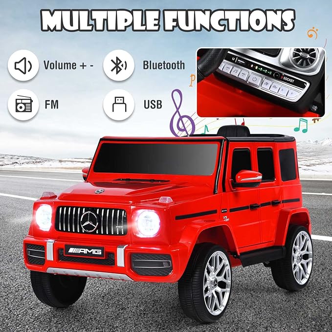 - Licensed Mercedes Benz G63 Car: This mercedes benz ride on car for kids comes with realistic Mercedes Benz G63 design, which featuring with decor elements, removable windows, headlights, a steering wheel and foot pedal.