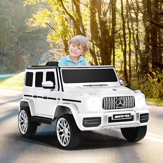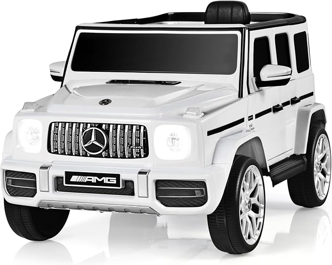 - Licensed Mercedes Benz G63 Car: This mercedes benz ride on car for kids comes with realistic Mercedes Benz G63 design, which featuring with decor elements, removable windows, headlights, a steering wheel and foot pedal.
